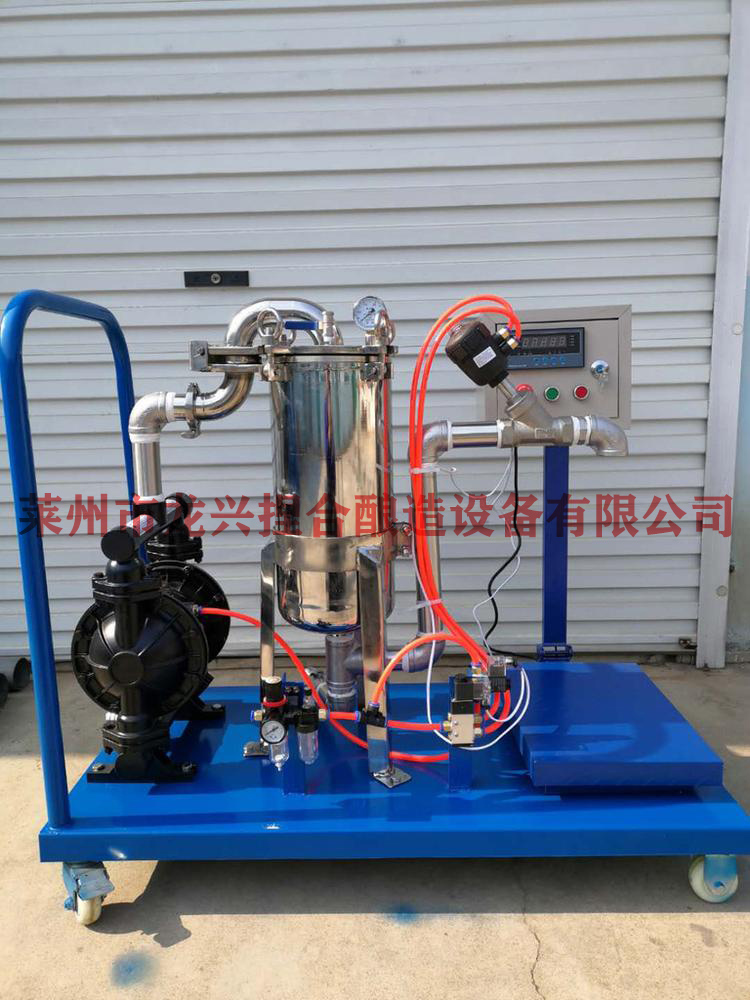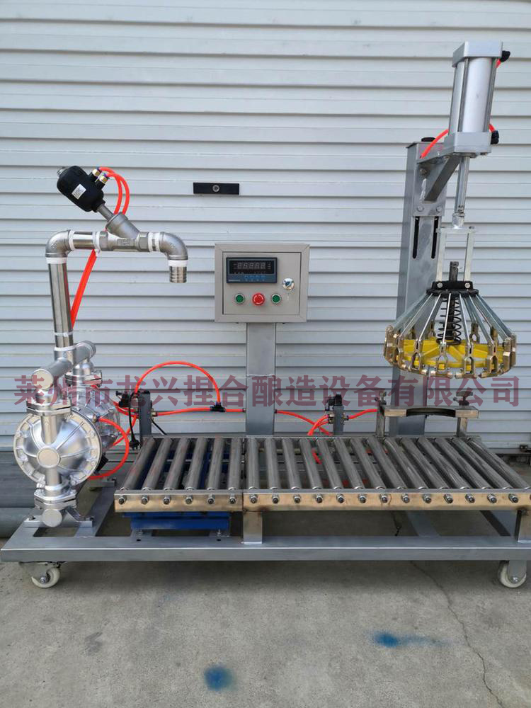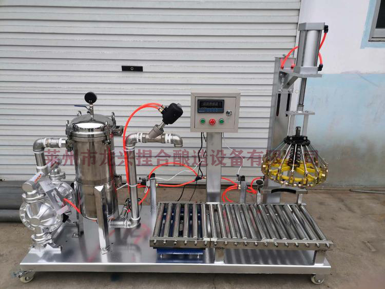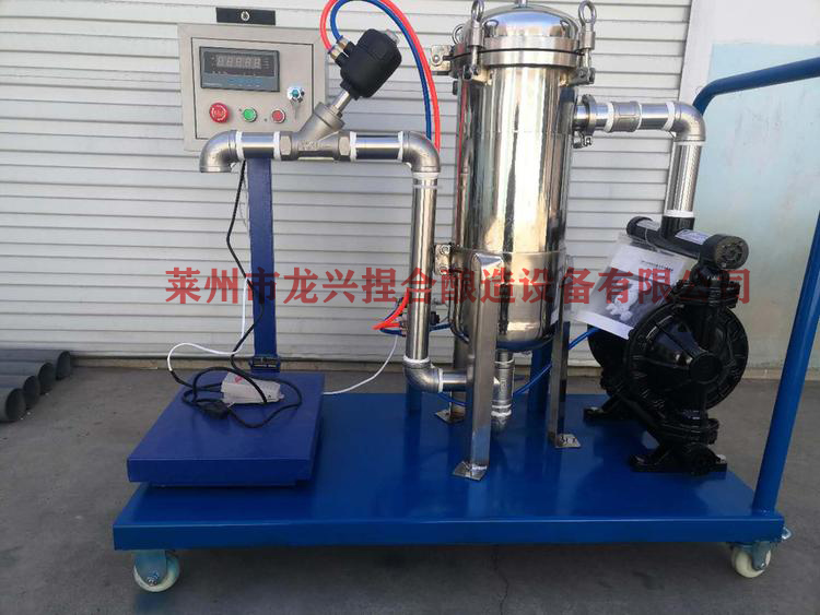 乳膠漆灌裝機常見安裝形式:1、高速分散機拉缸放在地面上生產內外墻乳膠漆,用一根口徑匹配的軟管一端連接固定拉缸放料口,一端連接隔么泵,對無過濾要求時可直接再用另一根軟管一端連接隔么泵,一端連接乳膠漆灌裝機接口,安裝完成,接通電源、氣源,設置重量,人工上桶即可開始灌裝;對有過濾要求的客戶,一根軟管連接拉缸和隔么泵后,另一根軟管連接隔么泵和過濾器,第三根軟管連接過濾器和乳膠漆灌裝機接口。2、對于無過濾要求,且放料口距地面超過60厘米+桶高的距離3厘米以上,可直接將放料口與灌裝機接頭部分對接。備注:隔么泵和過濾器客戶可自行選購或者從公司一并購買,可選擇馬口鐵桶氣動封蓋或者塑料桶氣動壓蓋。