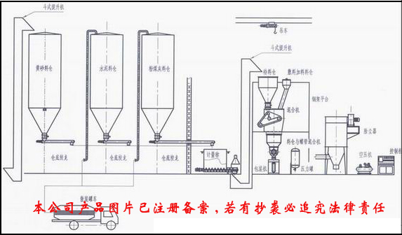 該設(shè)備主要由原料儲料倉、原料提升機(jī)、倉底紋龍、配料稱、待料機(jī)倉、混合機(jī)、螺帶混合機(jī)、成品料倉、包裝機(jī)、氣相平衡系統(tǒng)、除塵系統(tǒng)、自動控制系統(tǒng)等。此種設(shè)備自動化程度高,占用空間較大,投資高,可以滿足日產(chǎn)50噸到150噸的用戶需求。